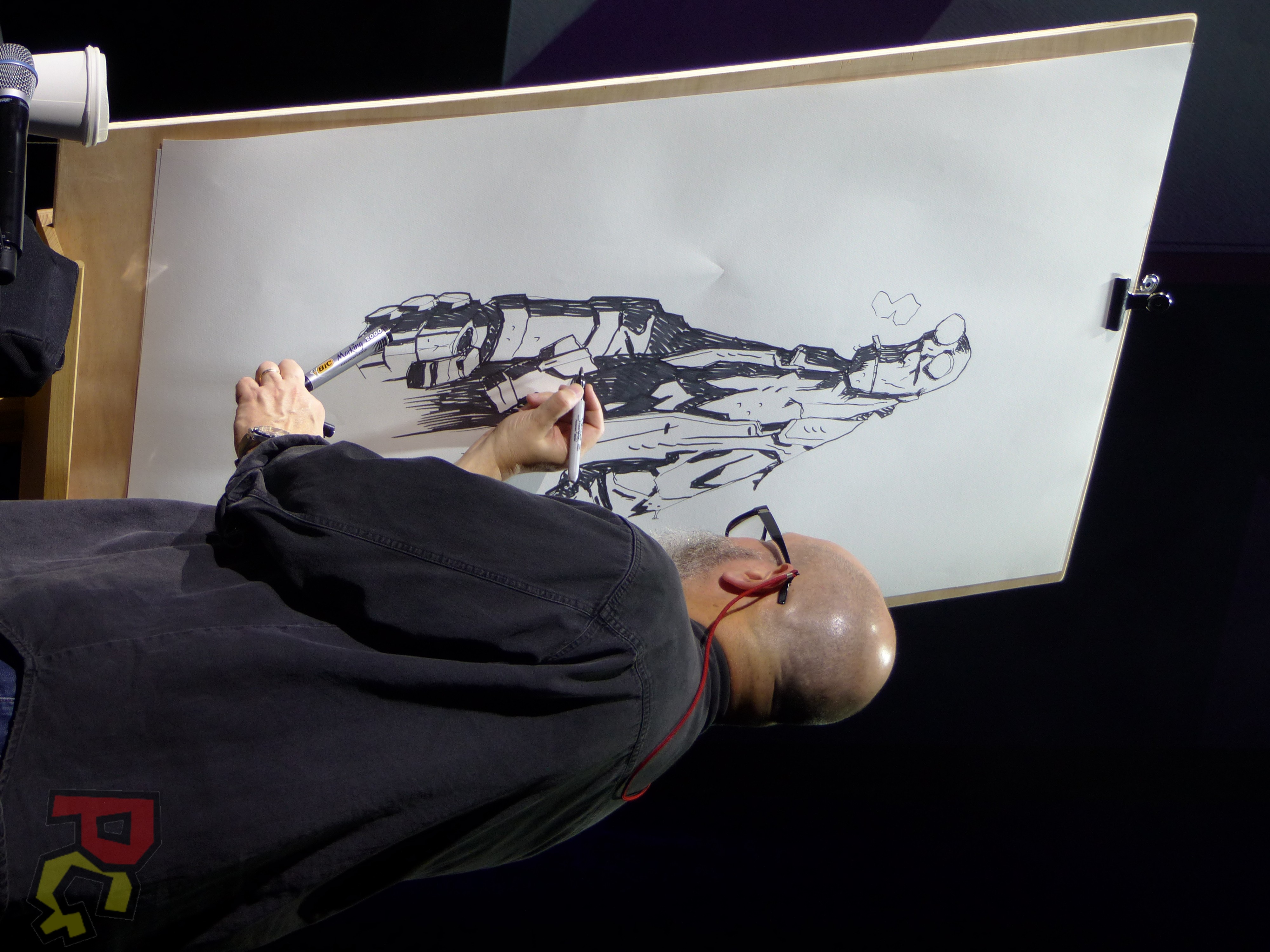 D’autres conférences et activités ont eu lieu tout au long de la journée dans cette salle un peu trop petite pour contenir tous les visiteurs (rendant l’ensemble bien moins agréable que les années précédentes) : table ronde avec Mike Mignola (Hellboy), animée par Karen Green (célèbre documentaliste de l’université de Columbia, spécialisée dans les comics), après une session de Live-Drawing du même artiste, concours de Cosplay et les annonces des gagnants des autres concours.