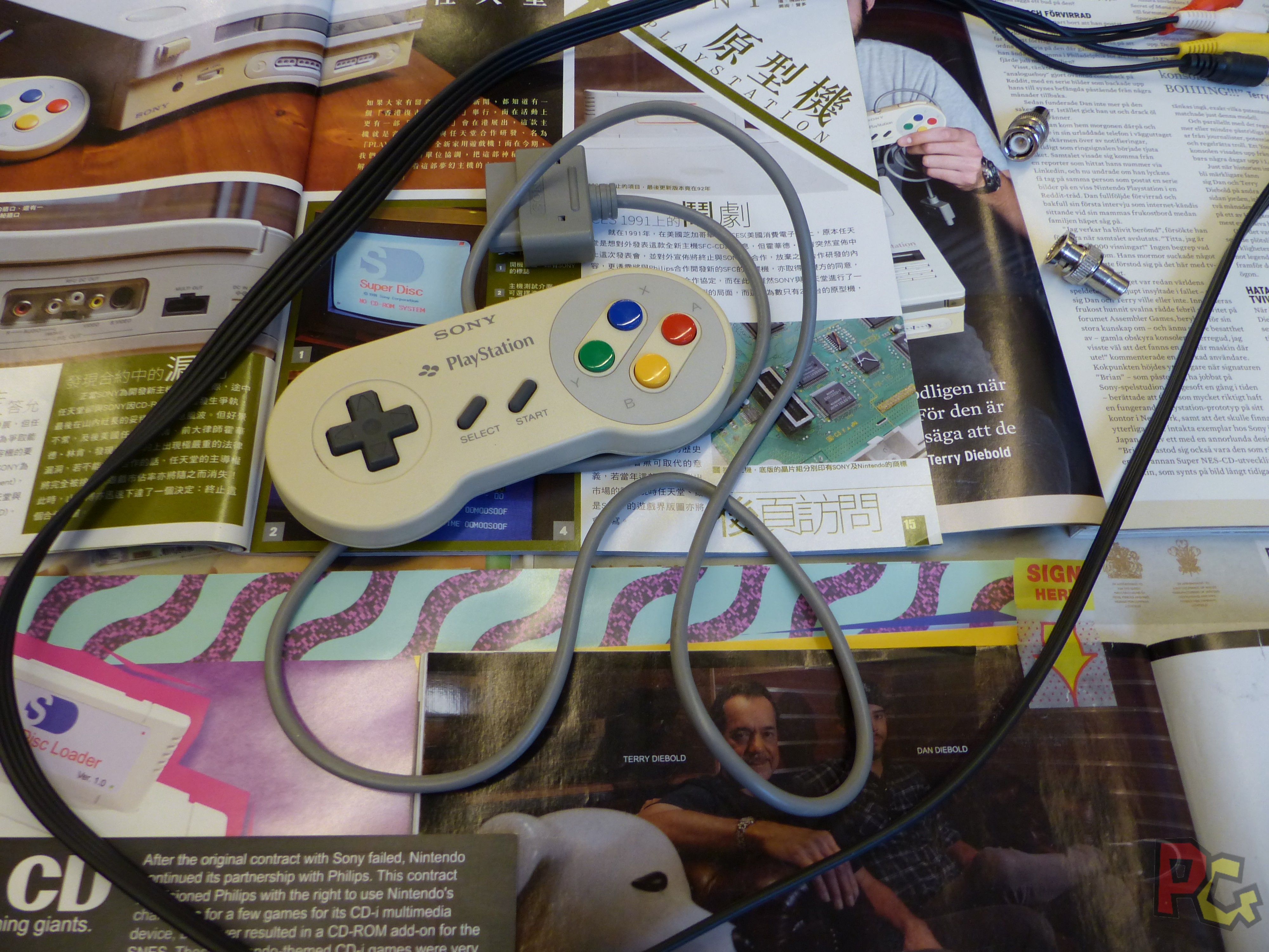 A côté, le stand de Shibuya Production présentait une exclusivité mondiale, ou tout du moins européenne, avec la présence de la Nintendo Playstation. Cette console issue d’une collaboration entre Sony et Nintendo n’a finalement jamais vu le jour sur le marché, et les 200 exemplaires qui avaient été fabriqués avaient tous été détruits sauf un, et il était présent sur place avec son propriétaire. Beaucoup de curieux sont venus voir cette machine extraordinaire, et il était même possible de l’essayer (mais sans la manette officielle, vu que certains joueurs ne sont pas très respectueux). Plusieurs jeux étaient sélectionnables, il ne manquait plus que la version cartouche de Rayman de Michel Ancel, mais il n’a pas préféré l’amener pour ne pas l’abîmer. Bon, il faut le reconnaître, jouer à Street Fighter avec une manette SNES dans les mains, ça ressemble à y jouer sur SNES. Mais rien que l’existence de cet exemplaire et sa présence sur les lieux suffisait à être remarqué. Finalement, pouvoir l’utiliser n’apporte rien de plus.