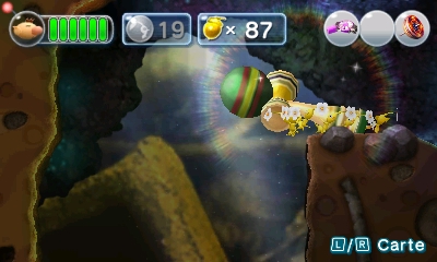 La prise en main du jeu est très facile. Il n’y a que le Pad directionnel et le stylet qui sont utiles pour manier Olimar et les Pikmin. En effet, le Pad permet de diriger Olimar, tandis que le stylet servira pour siffler, à envoyer les Pikmin là où c’est nécessaire, ou encore activer le jet-pack.