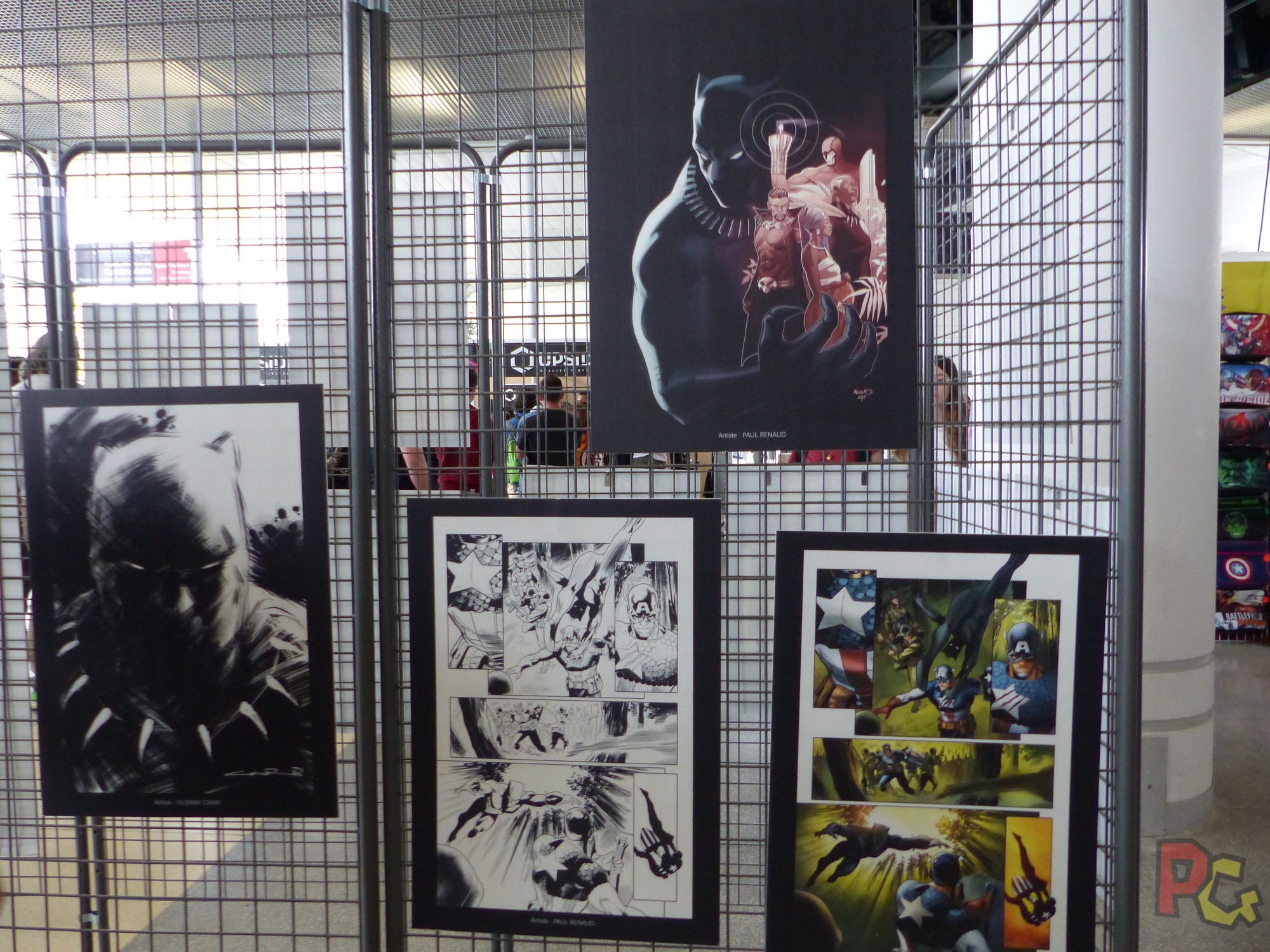 Autre petit point de déception à notre arrivée, ce fut la taille des halls. Vraiment pas grands. Je ne connais pas l’étendue du Parc des Exposition de Montpellier, mais j’aurais aimé voir un peu plus de surface. Notre entrée se faisait dans un premier hall qui m’a paru plutôt petit, dans lequel on trouvait quelques stands, dont plusieurs avec des jeux en VR, mais surtout la Nintendo Sunshine pour des parties de jeux vidéo endiablées, et une exposition Black Panther avec quelques planches du comics. C’était également le hall des dédicaces, avec des invités littéraires, des auteurs de comics, des YouTubeurs, des comédiens et des doubleurs. Un beau monde dont je vous parle un peu plus en détail plus bas, et qui valait le détour.