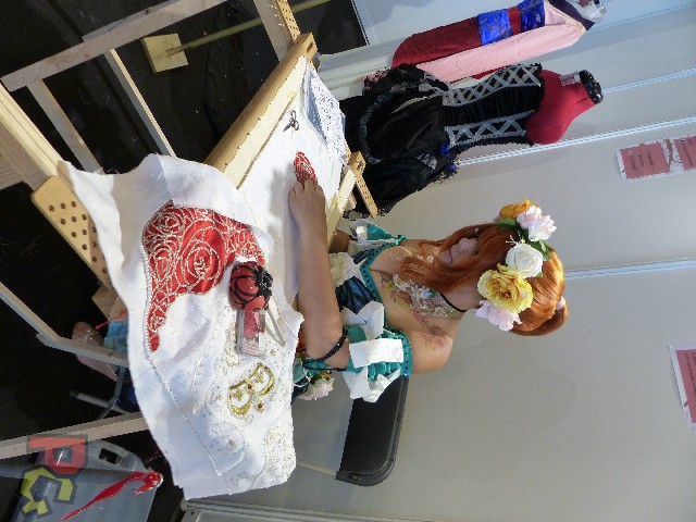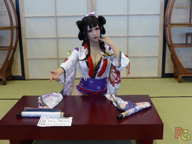 Au fond de cette partie, après le jardin permettant aux visiteurs de fumer et aux cosplayeurs de poser, les stands Cosplay justement. Créateurs professionnels, amateurs, vente d’accessoires, organisation de concours… L’endroit rêvé pour faire de belles photos pour ceux qui apprécient le Cosplay, ou pour se montrer et discuter passion commune pour ceux qui le pratiquent. Malheureusement, même si j’aime beaucoup le Cosplay j’ai un peu fait l’impasse sur cette partie cette année, et je n’ai même pas fait honneur aux concours qui s’y déroulaient. Mais j’ai pu découvrir de superbes talents et même en voir à l’œuvre.
