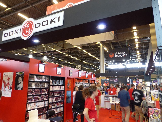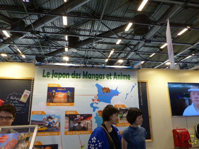 Dès l’entrée dans le premier hall, ce sont les mangas qui nous accueillent, avec la partie éditeurs, mais aussi les boutiques de goodies, peluches, DVD… Mais pour aller plus loin dans ce secteur, il faut s’éloigner du tapis central de couleur (qui permet de bien se repérer et d’atteindre les principaux autres axes), et se décaler sur le côté pour apercevoir deux expositions : « How to Make an Anime », et « Buichi Terasawa, aux frontières de l’imagination ». Je n’ai pu voir que la deuxième, et encore très rapidement, mais il s’agit de stands plus fermés, destinés à un public avide de connaissances, qui montrent le thème abordé plus en profondeur, et légèrement à l’écart du brouhaha ambiant du hall grâce aux multiples cloisons. A l’intérieur, plusieurs planches avec les explications de Terasawa-sensei lui-même sur la création d’un manga et le passage du manuscrit au numérique, le tout traduit en français bien évidemment. De nombreuses illustrations et des objets cultes complétaient le tout, pour un rendu très intéressant et très propre. Les photos étant interdites, je ne peux pas vous en proposer, il fallait être sur place pour en apprendre plus.
