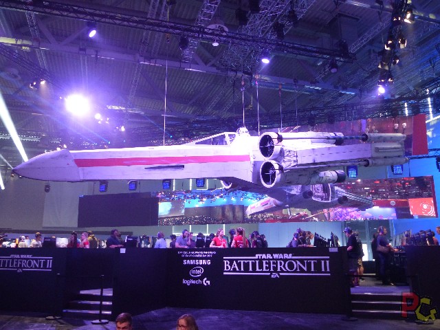 Mais le hall qui m’a le plus ébahie, je pense que c’est celui où Electronic Art avait élu domicile. Des voitures sur un circuit qui formait une arche, des vaisseaux géants de Star Wars Battlefront, et des postes de jeu par centaines. Car c’est ça qui est impressionnant sur place. Ce n’est pas seulement la taille des décors, c’est aussi le déploiement des machines en quantité industrielle. Et malgré cela, il fallait attendre souvent plusieurs heures avant de pouvoir jouer à son jeu favori ! Je crois me rappeler de 5 à 7 heures pour certains jeux dans ce hall… Mais on reconnait les habitués qui viennent exprès pour tel ou tel jeu, ils sont équipés de chaises pliantes et de quoi s’occuper pendant les files d’attente (la Switch est la console parfaite pour un tel endroit…).