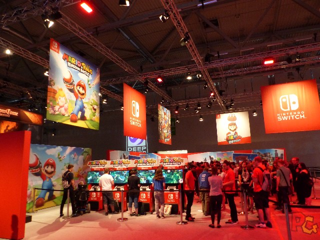 Bien évidemment, l’un des premiers stands que je suis allée voir, c’est celui de Nintendo. Je l’ai trouvé grand, mais sobre. Dans les tons rouges bien évidemment, mais sans grands décors exceptionnels, même si à ce moment-là je n’avais pas encore vu ce qui existait dans les halls d’à côté. De nombreuses bornes Switch et 3DS pour les jeux annoncés, et mêmes des Nindies, j’étais aux anges ! Heureusement que j’ai pu y venir lors de la journée réservée aux médias, qui nous a permis de voir un maximum de stands sans trop de monde… Parce que sinon, il fallait compter 2 à 3 heures pour tester un des gros jeux (Zelda, Super Mario Odyssey, Splatoon 2…). Ils avaient toutefois une petite scène à eux (mais bien moins grande que celle de la Japan Expo… et un lieu étrange, le « Red Cube« , pour les lives en direct.