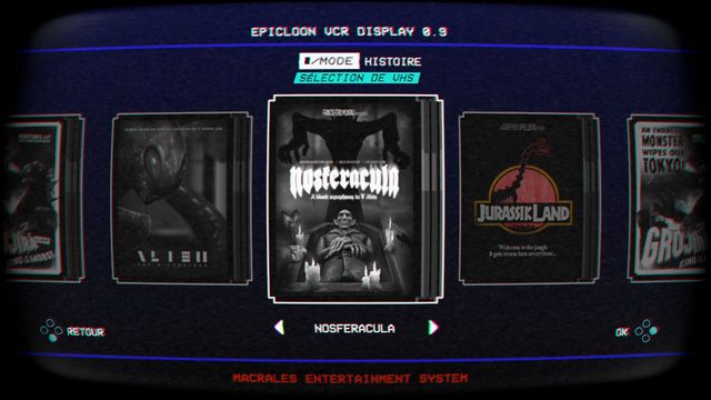 Chaque cassette contient entre 30 et 40 scènes, qui nous rappellent le déroulement du film. Les graphismes sont très différents de l’original, certains peuvent ne pas aimer, mais ils restent néanmoins très réussis. S’agissant de vieux films dans un magnétoscope, la direction artistique a pris un pli très rétro, avec l’impression de jouer sur tube cathodique (coins arrondis et grésillements), des images parasites qui apparaissent de temps à autre, des glitchs, et bien sûr le tout en noir et blanc. Mais pas un noir et blanc tout moche et usant. Ce sont surtout de multiples teintes de gris, avec quelques ajouts de couleurs en arrière plan pour rendre l’aspect du jeu moins fade et moins fatiguer les yeux, ou pour différencier nos petits aliens.