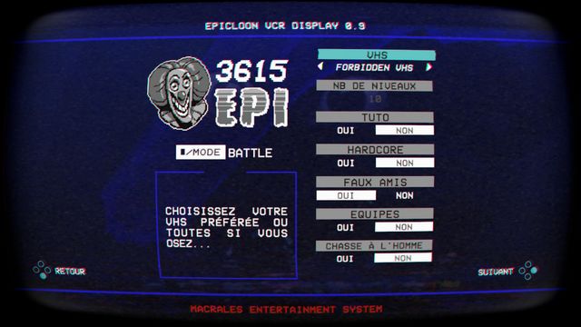 Une fois une cassette terminée, celle-ci devient jouable en mode speedrun, jouable uniquement en solo. Un compteur tourne tout au long de la cassette, le but étant évidemment de faire le meilleur temps. Mais comment se comparer aux autres ? Je n’ai pas trouvé de tableau, et Ça le Clown qui nous accueille à la fin nous indique seulement d’envoyer une copie d’écran aux devs du jeu. C’est dommage, j’aurais bien aimé voir les temps des autres joueurs, surtout qu’il y a de quoi faire de bons challenges ! La difficulté de ce mode, c’est qu’on est vraiment seul. Pas de coéquipiers ou d’IA pour nous aider (ou pour finir avant nous dans les niveaux qui nous posent problèmes). J’ai fait une cassette dans ce mode, pour essayer, et finalement je me suis bien prise au jeu et ça m’a beaucoup plu ! L’ambiance est totalement différente d’une partie à plusieurs, plus sérieuse, et j’ai absolument voulu finir la cassette.
