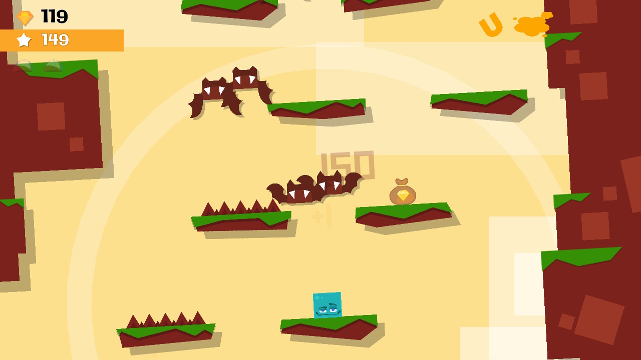 Et puis ce serait trop facile si les plateformes étaient toutes simples, sans personne autour. Bien évidemment, votre parcours ne sera pas si simple que ça, et il y aura quelques obstacles. A commencer par des pics sur certaines plateformes. Il est fortement déconseillé de sauter dessus… Puis quelques oiseaux feront leur apparition, ainsi que des boules piquantes, tous deux feront des trajets horizontaux pour vous gêner dans votre passage.