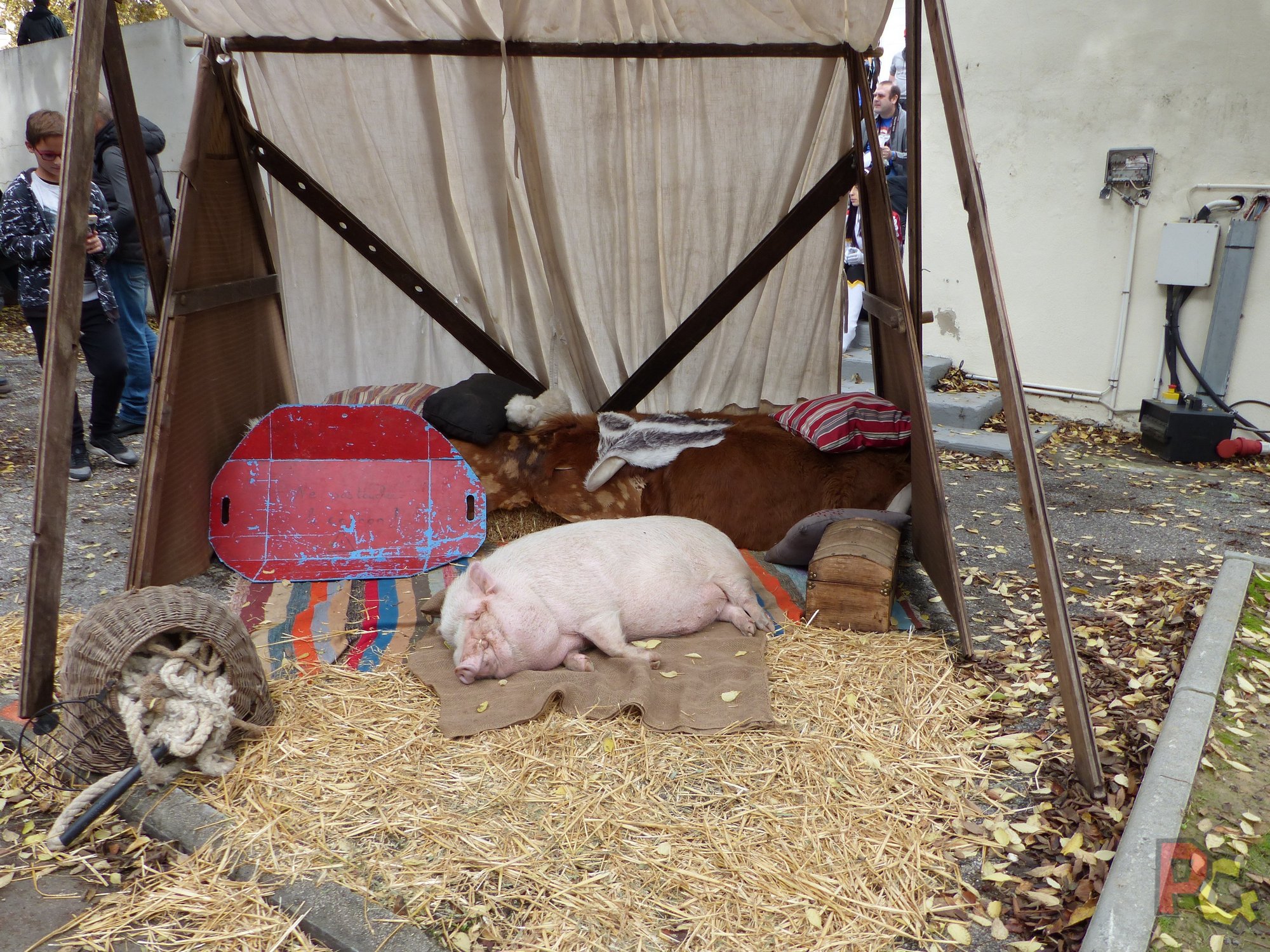 Et puis Brocéliande, c’est aussi et surtout son village steampunk, avec de nombreux exposants aux articles divers et variés, ainsi que le village médiéval à l’extérieur, entre les 2 halls. Un espace privilégié pour découvrir des métiers d’autrefois, des combats à l’ancienne, et même des animaux de la ferme. Étonnant dans un salon dédié à la culture geek, mais toujours agréable. Surtout que personnellement, j’aime beaucoup cet univers même si je m’y connais peu.