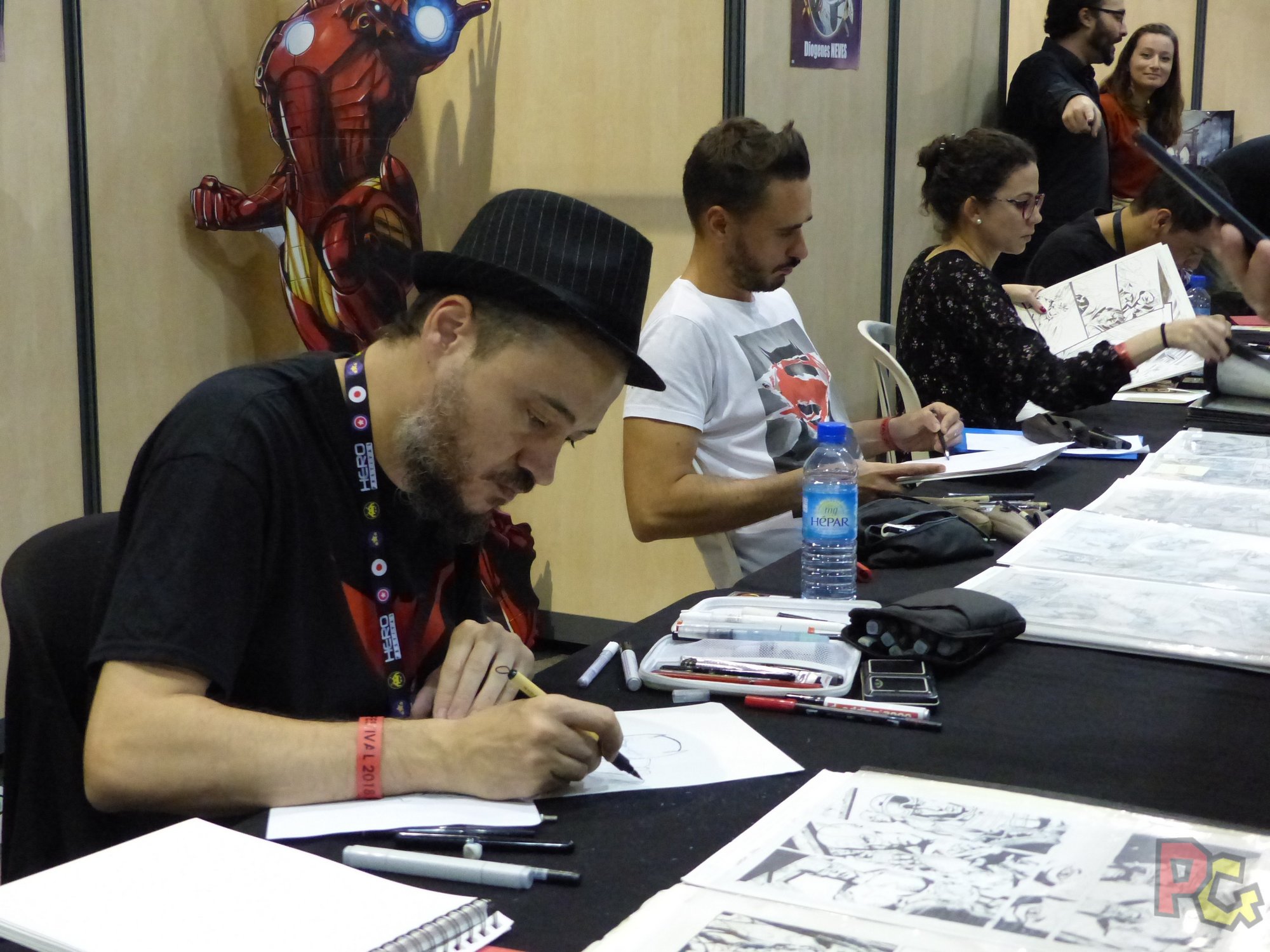 Konoha c’est aussi le coin des arts martiaux, avec toujours un tatami posé dans un coin et diverses démonstrations tout au long du week-end, des dessinateurs avec entre autres Jerôme Alquié, l’illustrateur qui créé toutes les affiches du Hero Festival depuis le début.