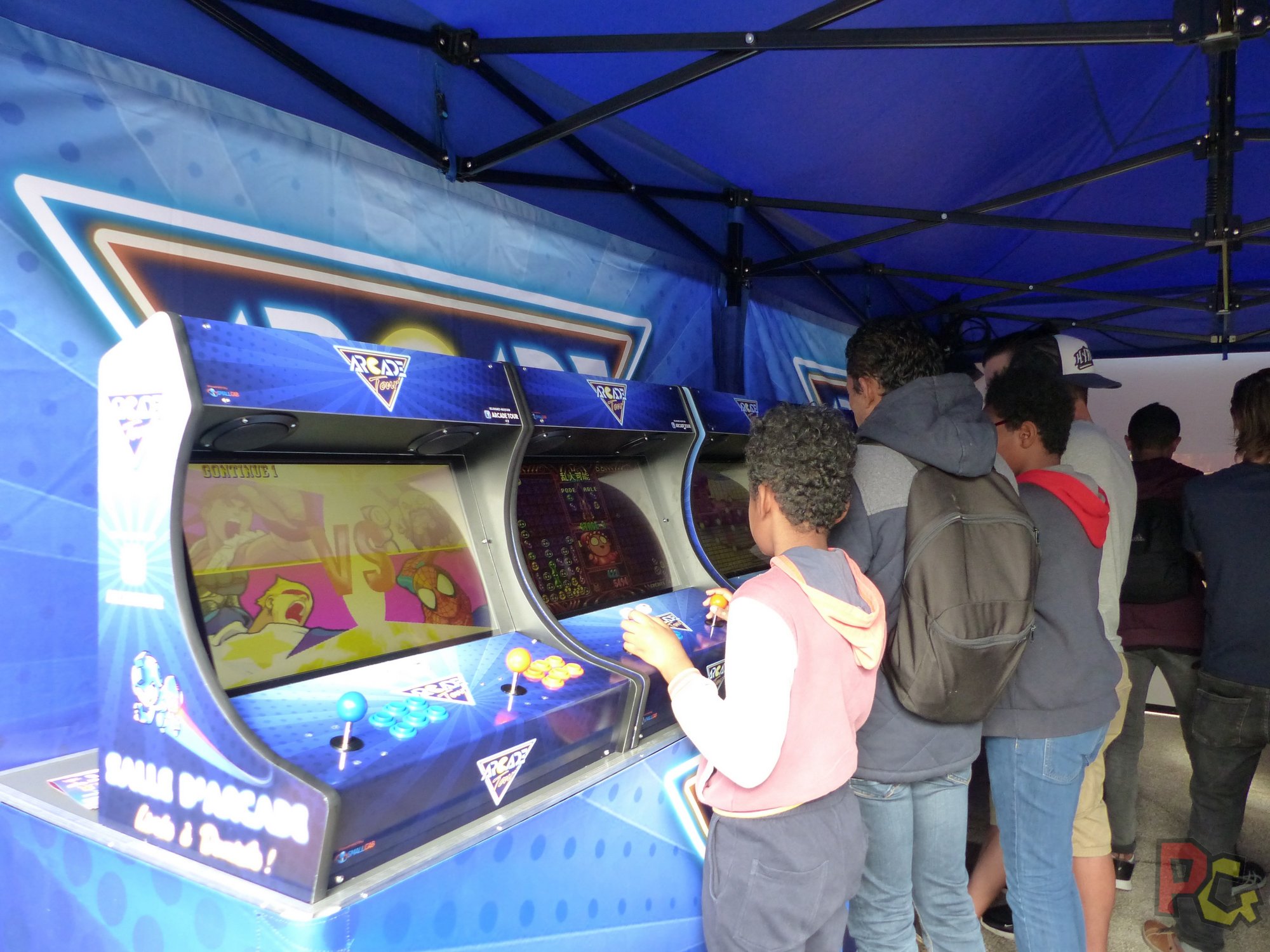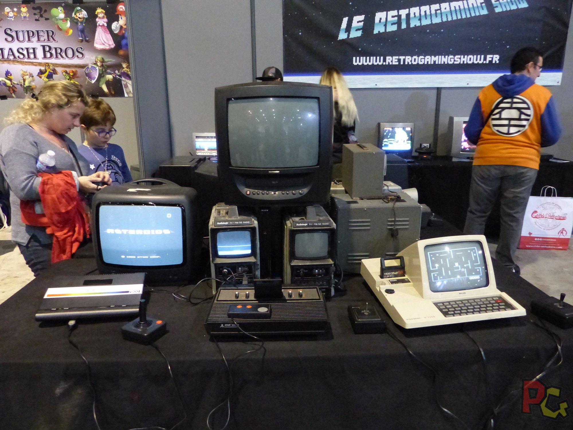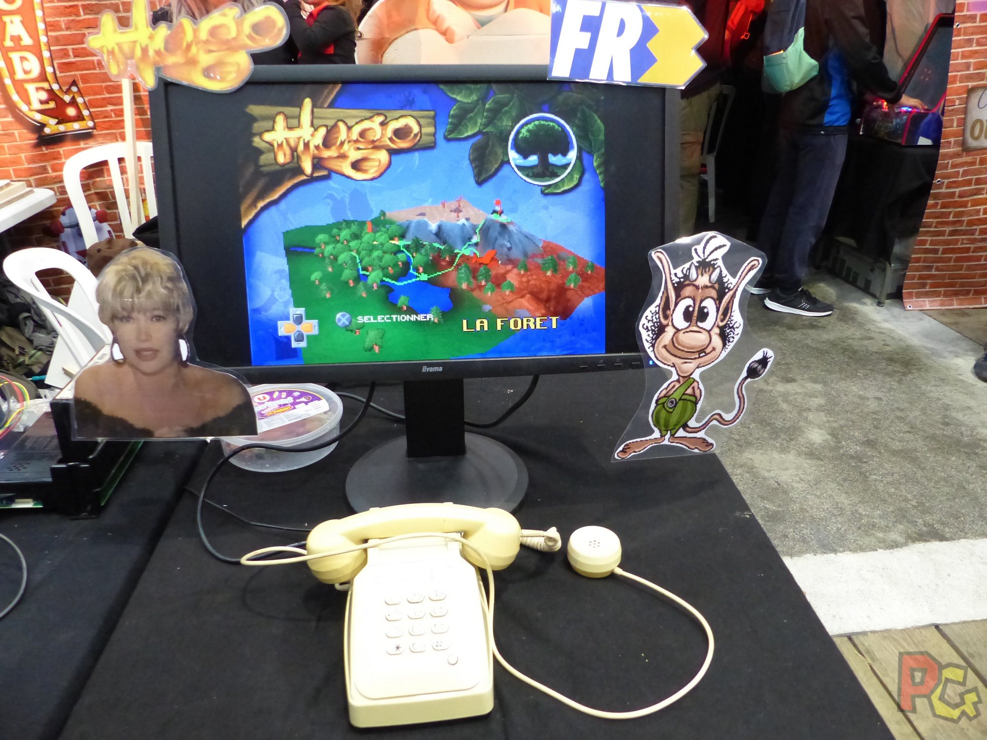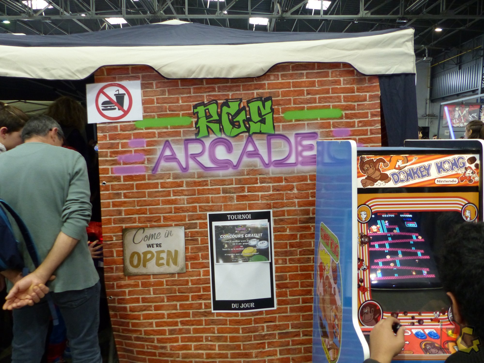 Coté rétrogaming, j’ai une nouvelle fois été servie ! Il y avait plusieurs stands, chacun avec diverses consoles et jeux d’antan. Sur le stand de Rétro Geek Style, j’ai eu une nouvelle fois l’opportunité de prendre en main un vieux téléphone et me faire une session d’Hugo Délire, un jeu que je regardais à la télé quand j’étais jeune, où ce sont les touches du téléphone qui font office de manette ! Et juste à côté, une salle d’arcade murée avait été aménagée avec plusieurs bornes d’arcade, petites et grandes, et des mini-flippers. Un autre stand avait installé une salle d’arcade, à l’extérieur du hall cette fois, dans un camion. Surprenant, très exigu, mais franchement sympa ! Il y avait aussi des animations, notamment avec Fred of the Dead sur la petite scène de l’univers, tout au fond.