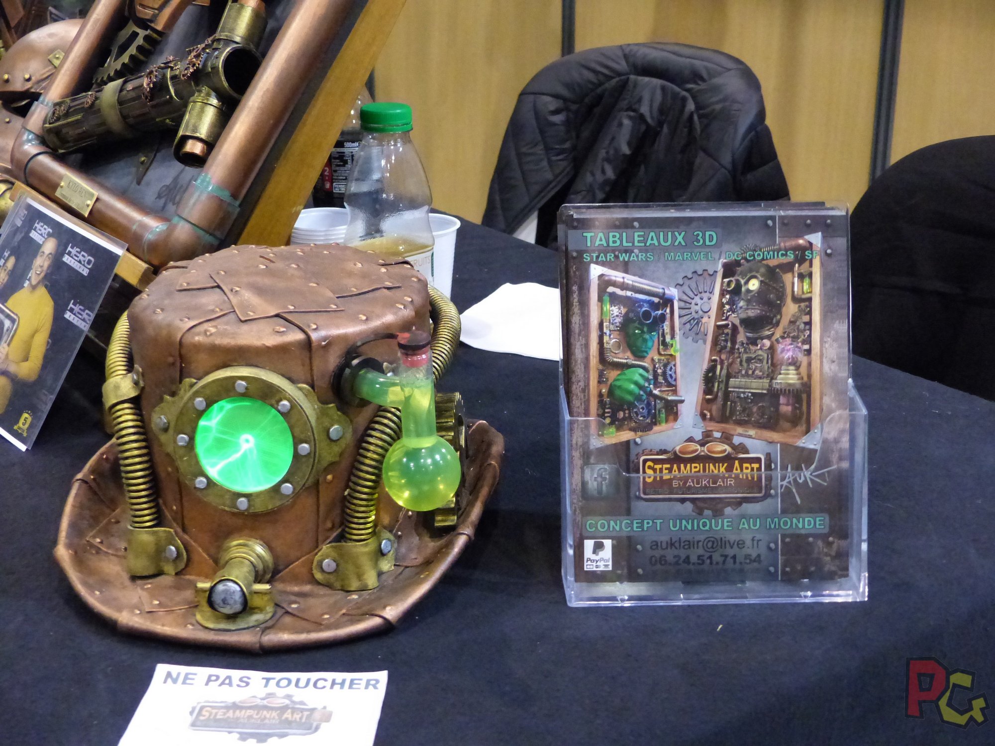 Dans le même hall, de l’autre côté, l’univers Brocéliande présentait des domaines différents, plutôt mystiques. Un endroit que j’adore, de nombreux stands m’inspirent beaucoup. Les invités d’honneur de cet univers sont bien connus et sont devenus des habitués de ce genre d’événement. Guillaume Briat et Bô Gaultier de Kermoual de Kaamelott se sont prêtés au jeu des dédicaces (gratuites) et des conférences. En parallèle, on pouvait retrouver plusieurs auteurs et illustrateurs sur les stands des libraires.