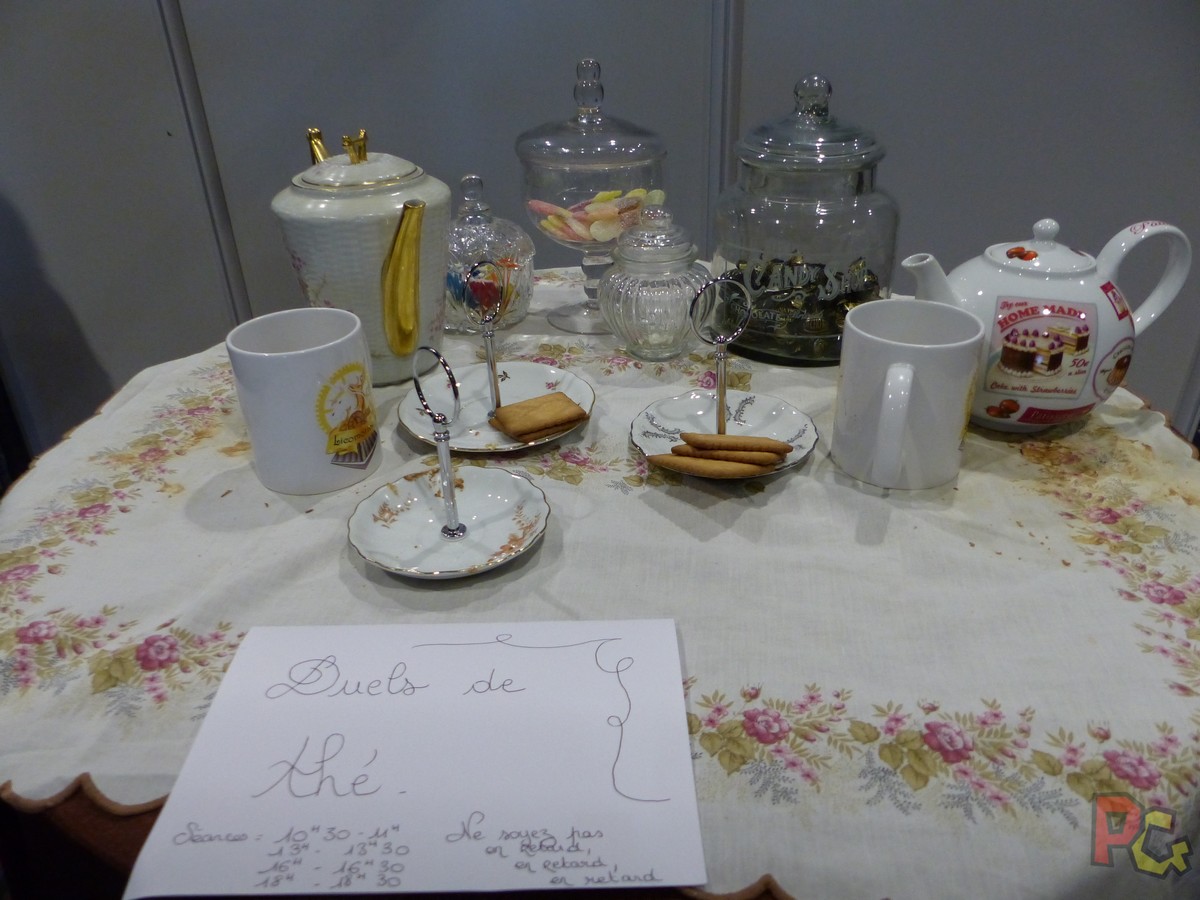 Tout d’abord, au lieu d’être sur 2 étages, le festival s’est déroulé sur 3. Donc de l’espace en plus ! Tout le Palais des Congrès n’était pas utilisé, loin de là, mais il y avait tout de même une belle surface supplémentaire. Cela a permis de mieux catégoriser les espaces. Il y avait donc au 2ème étage tout ce qui était boutiques, quel que soit le genre. Des très classiques avec des peluches, des figurines Pop, du Pixel Art et j’en passe, du steampunk et des objets médiévaux, ou encore de la culture japonaise. Côté steampunk, j’ai acheté 2 thés très originaux de la Maison Pumplewick, aux couleurs de Jurassic Park et du Cinquième Elément.