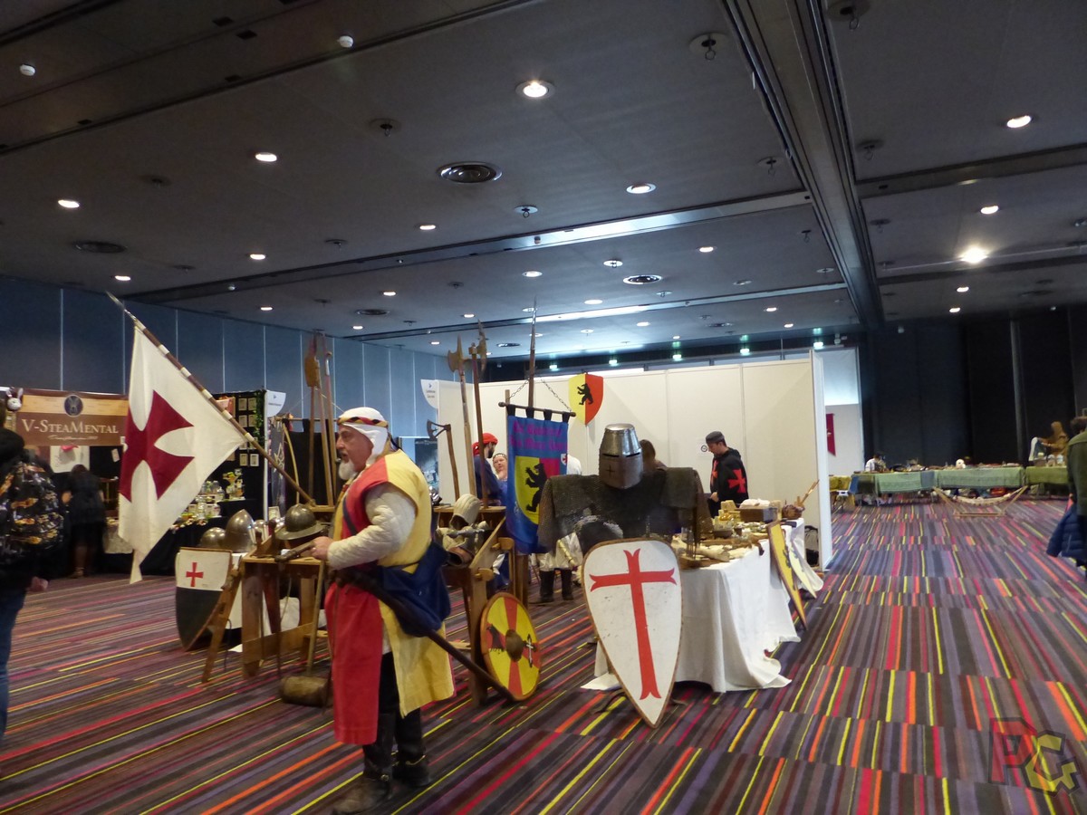 Au final, l’espace était vraiment bien aménagé, avec une allée principale sur le côté qui menait à la majorité des stands, et une autre perpendiculaire au centre, séparant les 2 grands espaces arts martiaux et combats médiévaux. Ainsi, il était tout à fait possible de passer d’un univers à l’autre sans les mélanger pour autant.