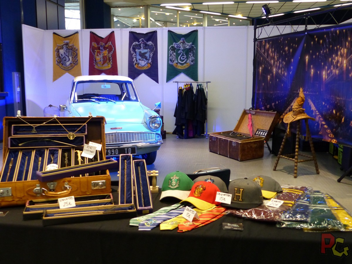 Et puis il y avait le rez-de-chaussée, un peu modifié car certains des stands avaient migré au deuxième étage. Du coup on y retrouvait la scène pour les animations, des combats de sabre laser, quelques ventes de posters et des stands de nourriture. Mais le plus intéressant ne se remarquait pas en arrivant, il était plus loin. Plusieurs expositions étaient présentées à cet étage. Harry Potter avec la Ford Anglia et la possibilité de faire des shooting photo, ainsi qu’un espace rétrospective avec plusieurs éléments de la saga.