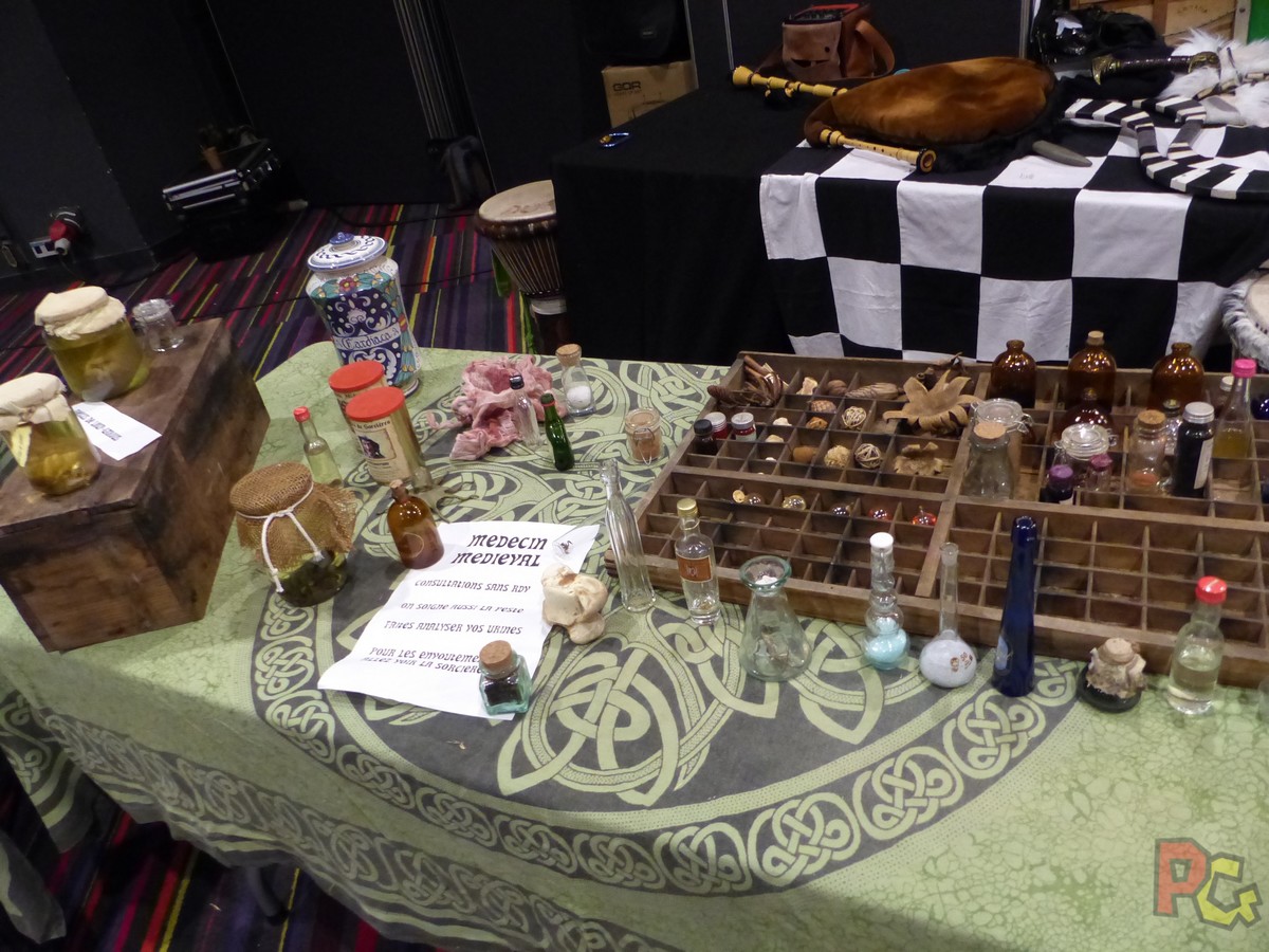 Aux cotés des boutiques se trouvaient également les jeunes créateurs qui exposaient leurs dessins, un espace arts martiaux et massages, et une grande taverne médiévale pour s’hydrater et manger un morceau. Le tout en regardant des combats se dérouler juste à côté.