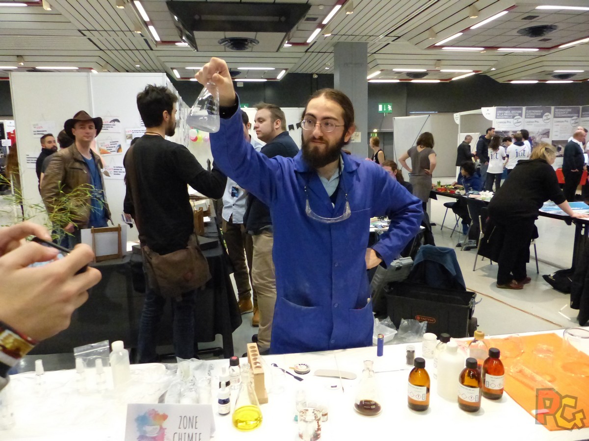 Cette année, ce sont plus de 80 invités qui étaient présents, ce qui est colossal. N’espérez toutefois pas voir de grande tête d’affiche américaine. Même si plusieurs invités sont internationaux, le cinéma est peu représenté. La plus grand partie des invités sont des YouTubeurs traitant de sujets très divers, mais aussi des blogueurs ou associations. Cela va du « classique » gaming, avec par exemple Monsieur Plouf à la production vidéo plus générale avec Golden Moustache, Ockam Razor ou encore Anthox Colaboy, en passant par l’histoire, la science, la paléontologie ou même l’astronomie avec Astronogeek. La science est particulièrement représentée sous toutes ses formes, et j’avoue que ça me fait particulièrement plaisir, étant moi-même scientifique de métier !