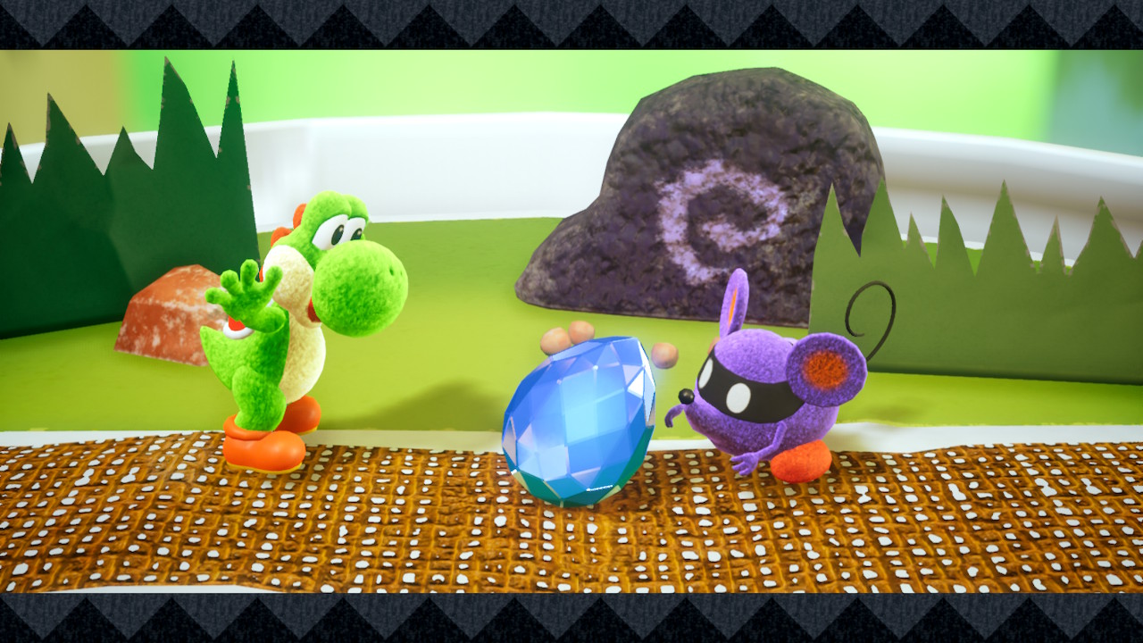 Cette fois encore, c’est Kamek qui met la pagaille, accompagné de Bowser Junior. En voulant s’emparer du Soleil, et avec la protection des Yoshi, le Soleil explose en plusieurs morceaux, et ses gemmes se retrouvent éparpillées dans un monde inconnu. Les Yoshis et le Soleil, vidé, atterrissent dans ce même monde (comme c’est pratique), et un Yoshi est désigné pour partir à la recherche des gemmes. Un ou deux, car le jeu est tout disposé à la coopération. Mais vous me connaissez, je joue uniquement seule, donc je ne vous parlerai que du mode solo. Le petit détail mignon en commençant, c’est qu’on peut choisir la couleur du Yoshi choisi.