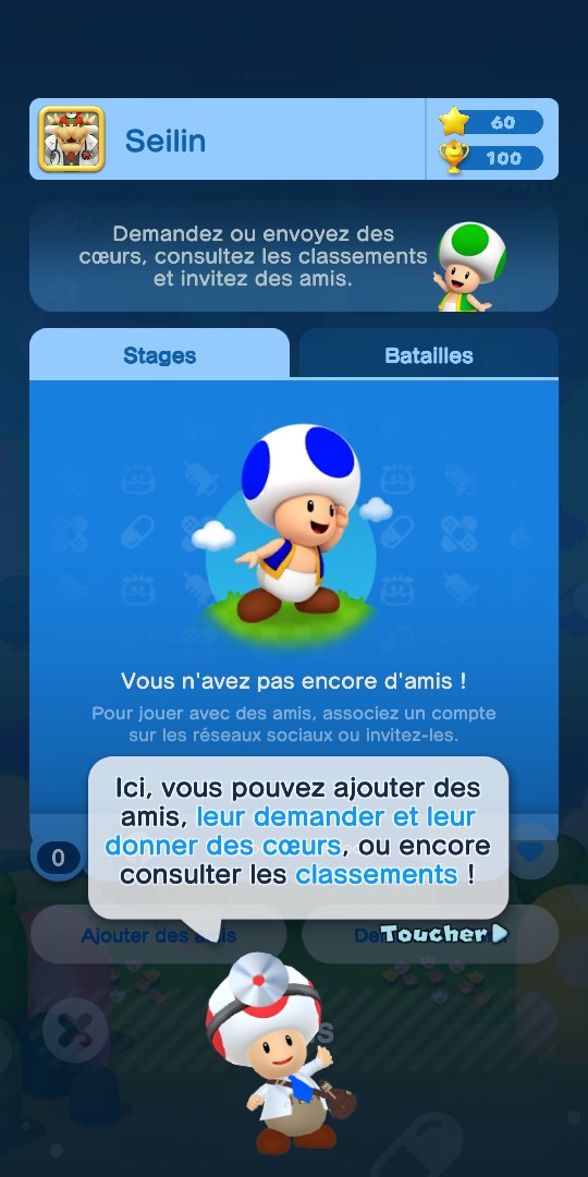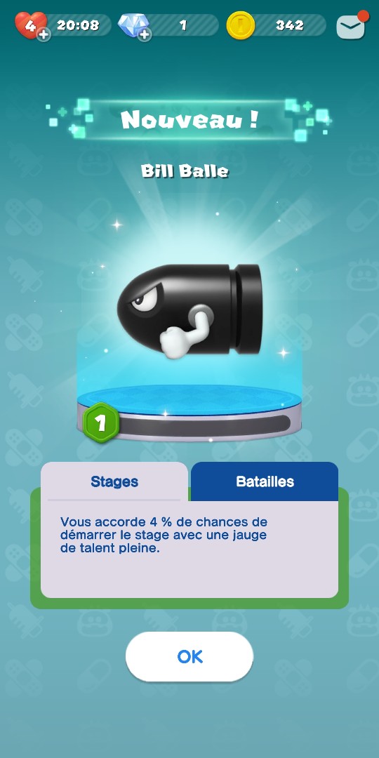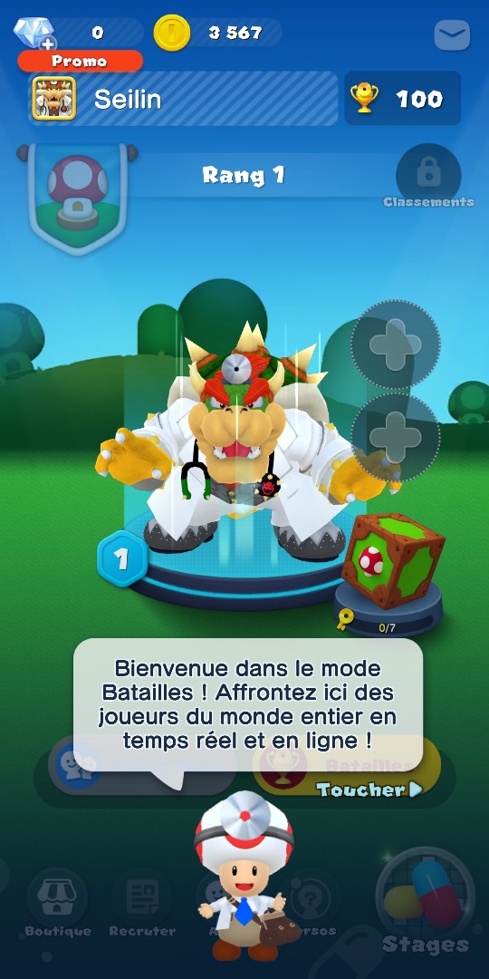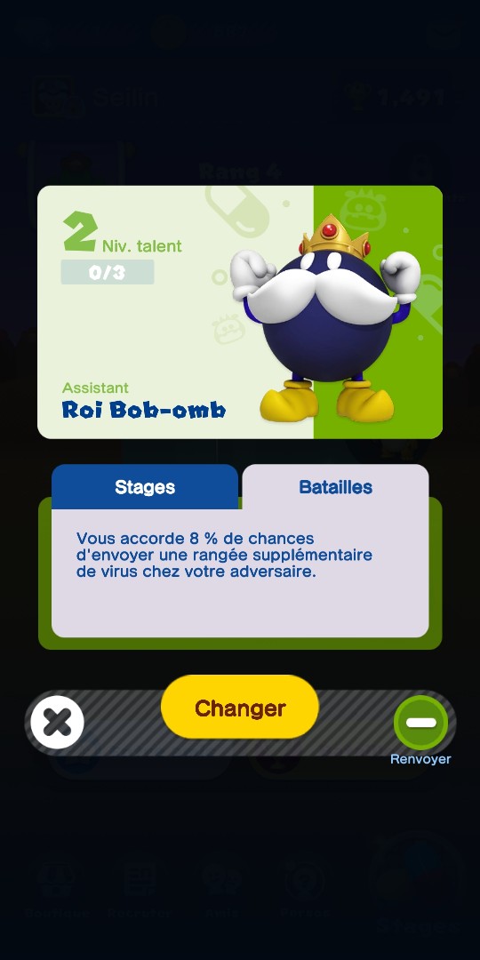 A partir du niveau 20, vous pouvez également choisir un assistant pour accompagner votre médecin. Le premier n’est autre que ce cher Goomba (parfait pour moi qui ai choisi Bowser comme médecin), mais il y en a un grand nombre, parmi les nombreux ennemis rencontrés dans le Royaume Champignon (Bob-Omb, Koopa, plante Piranha, Bill Balle…).