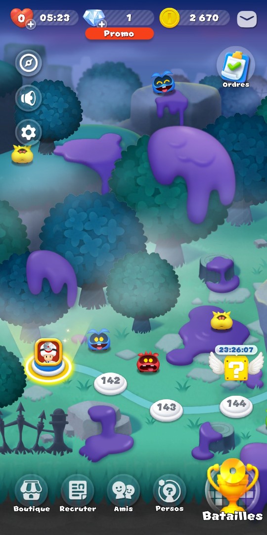 - Session plus longue : pour ma part, je commence avec un niveau à améliorer afin d’avoir 30 minutes devant moi pour avancer tranquillement. Je passe ensuite aux batailles (cela prend plus ou moins de temps), et je reviens sur les niveaux du mode aventure.