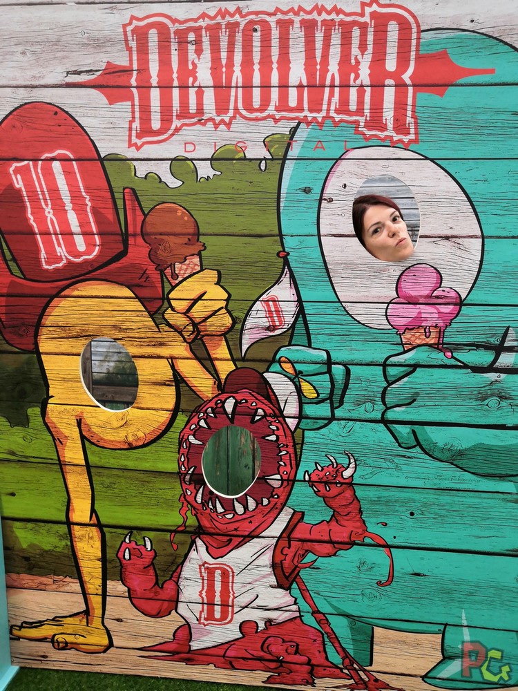 D’ailleurs, je tiens à remercier les personnes sur place, le stand de Devolver était très fun. On se serait cru dans une fête foraine. Une très bonne ambiance, des couleurs vives, des stands photo, et je suis ressortie avec une sucette ! Mais passons sur ce point et parlons du jeu, ça vous intéresse surement beaucoup plus !