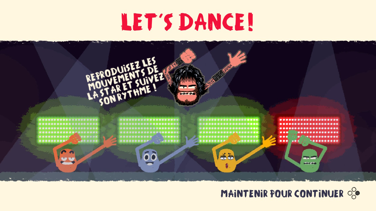 A d’autres moments, une petite musique retentit, et l’écran s’assombrit pour mettre en avant une corde dorée. Si vous êtes dans les parages, foncez, cela vous amène à un mini-jeu. Je n’ai pas eu l’occasion d’en faire beaucoup, leur apparition étant déjà rare et nous étions rarement au bon endroit au bon moment. Le seul que nous avons eu à plusieurs, nous l’avons raté… Il fallait atteindre la zone éclairée avant le temps imparti… Je n’étais pas loin ! Et quand je jouais seule, j’ai pu y avoir droit aussi, avec une sorte de Just Dance où le but était de reproduire les mouvements présentés. Je me suis pris un certain nombre de tomates en pleine poire tellement j’étais nulle…
