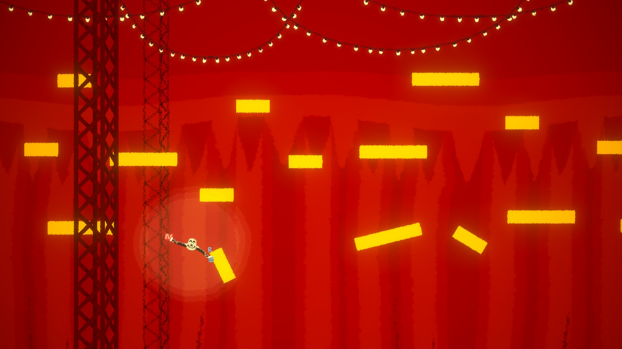 Pour atteindre le drapeau, il faudra utiliser tous les éléments qui s’offrent à vous. Les bras des amis s’ils sont coopératifs, les plateformes pas toujours immobiles, ou encore les cordes pour se balancer à plus longue distance. Mais attention aux pièges. Le vide n’est pas votre seul ennemi, des pics parfois vicieux vous attendent dans certains recoins, et d’autres ajouts des développeurs dont je ne parlerai pas ici pour garder un peu de surprise vous donneront du fil à retordre !