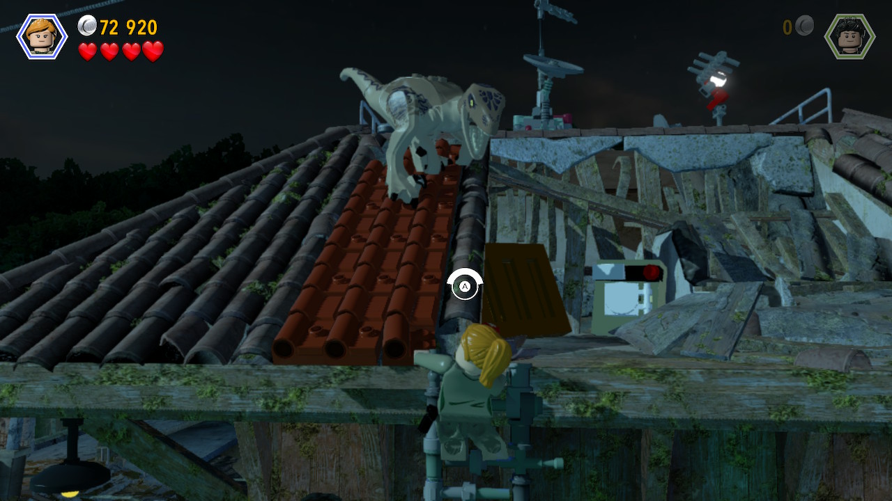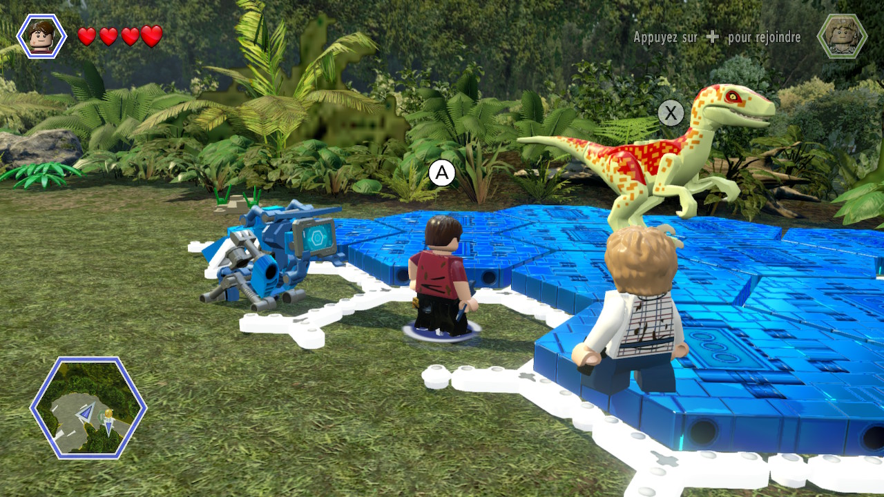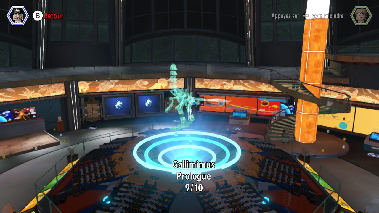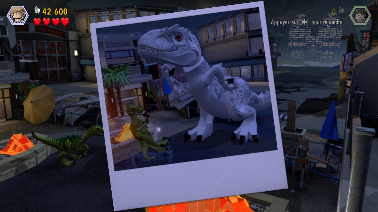 En dehors de l’aventure assez linéaire, bien que pleine de rebondissements, le jeu est fait de telle sorte qu’on prenne plaisir à revenir en arrière. Il y a des tas de choses à collecter. J’ai déjà parlé des ambres pour incarner les dinosaures, certaines plus visibles que d’autres, mais il y a également des briques de Lego dorées, sortes de trophées à trouver et/ou à débloquer par le biais de certaines actions, des briques rouges, des employés des parcs à sauver, des photos à prendre, ou encore des mini-kits de fossiles à compléter. Je n’ai malheureusement pas encore réussi à en finaliser un seul (il me manque toujours au moins un morceau quelque part…), mais une fois complétés, cela donne un hologramme dans le centre de gestion de Jurassic World !