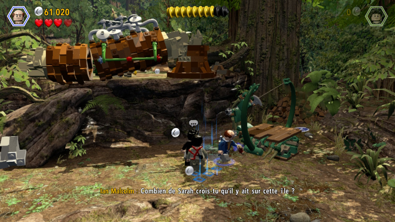 Autour de vous, tous le décors en Lego sont cassables. Et je ne peux que vous conseiller d’y aller à cœur joie. Non seulement vous pourrez trouver ce qu’il vous faut pour la suite, mais c’est aussi une excellent moyen d’amasser un sacré pactole. D’autant qu’il vous en faudra un certain nombre pour le trophée « véritable survivant » de chaque chapitre. Et puis, c’est un excellent défouloir !