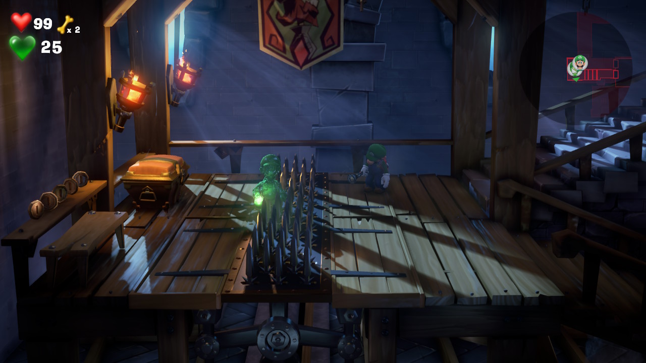 Luigis Mansion 3 - fantôme puissant et bouton ascenseur