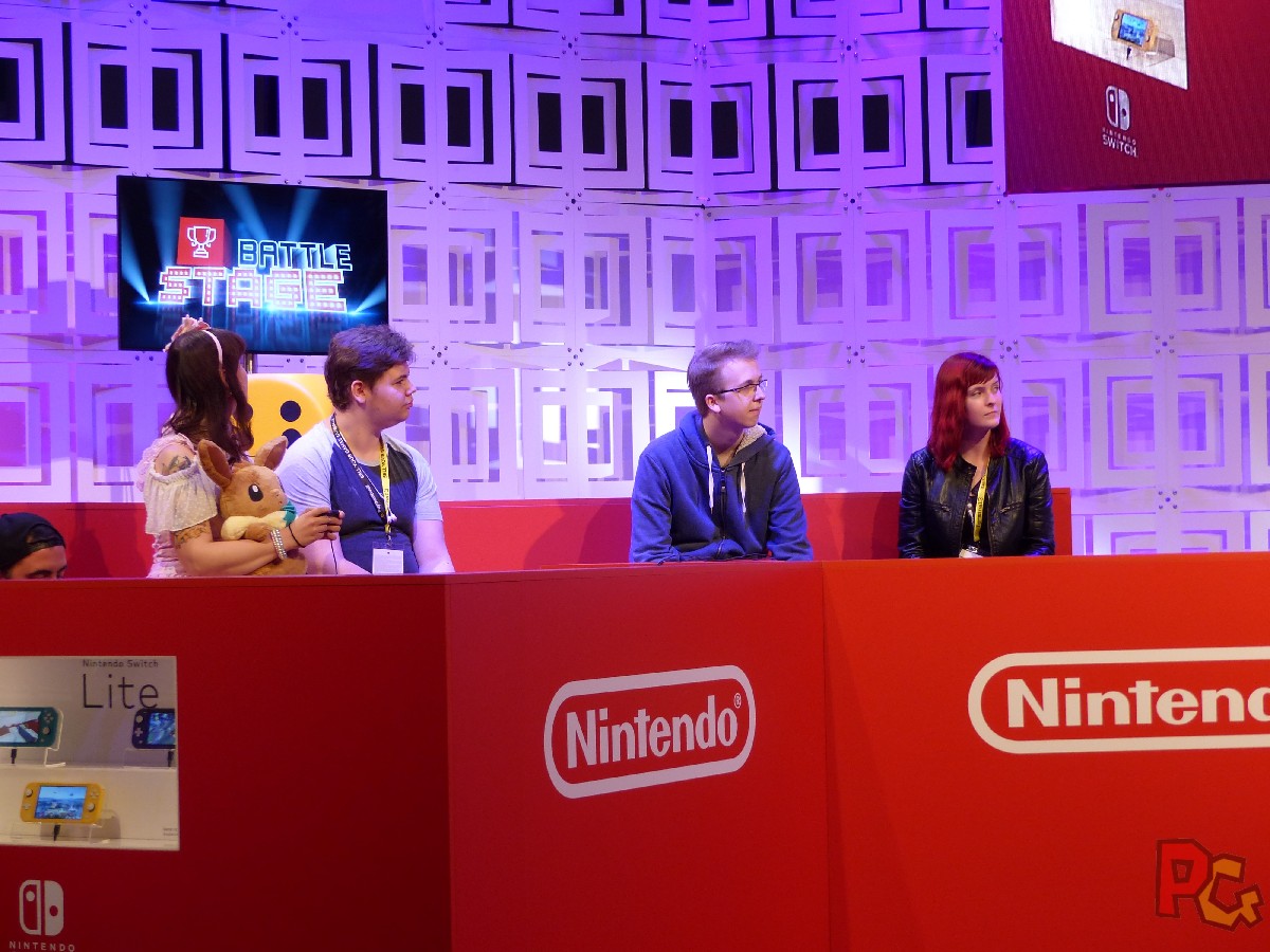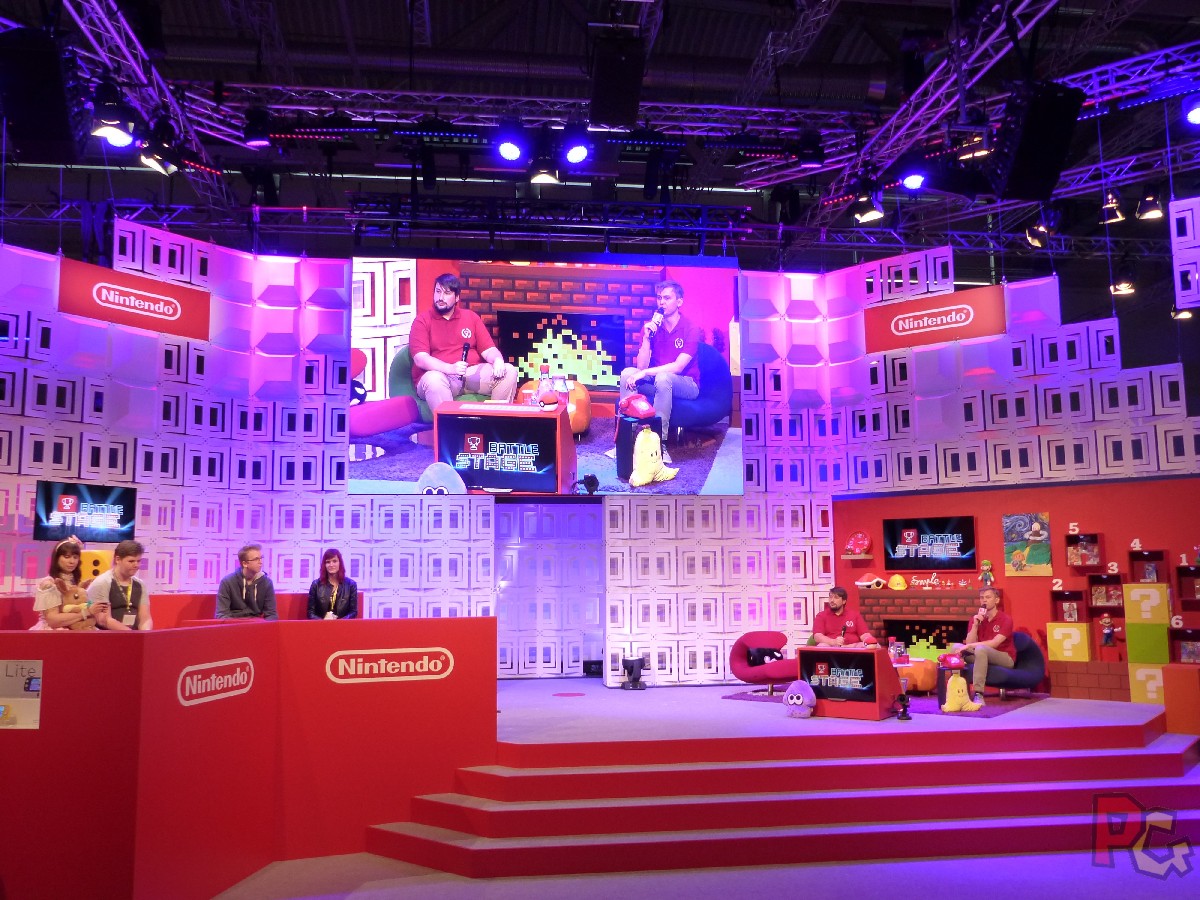 C’est à partir de là que le stand a commencé à vraiment me plaire ! Au centre du stand Nintendo, à côté de l’accueil, la scène. Celle qui abrite les présentations, les interviews des développeurs sur place, et les matchs de joueurs. Très différente de celle que j’ai connu il y a 2 ans. Moins conventionnelle, pas de gradins pour s’asseoir et profiter du spectacle. Mais un côté avec un bel espace aménagé comme un salon tout confort, ou la gaming room de mes rêves ! L’autre côté était plus classique avec ce qu’il fallait aux compétiteurs pour jouer dans les meilleures conditions. Et un grand écran central, bien évidemment.