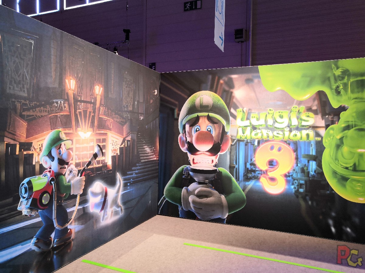Face à la scène, dans la seconde moitié de l’espace Nintendo, 2 grands espaces réservés à Zelda Link’s Awakening et Luigi’s Mansion 3. Comme tous les grands jeux Nintendo, cette partie était bordée et de longues files d’attente mises en place. Environ une vingtaine de consoles pour chaque jeu, des panneaux pour séparer les espaces, mais surtout des PLV et toiles avec artworks du jeu. Simple mais efficace. Beaucoup de monde sur ces bornes, parfois plusieurs heures d’attente. D’ailleurs, je n’ai pas pu mettre la main sur Zelda même lors de la journée presse. Mais je suis arrivée très tôt le lendemain, et je n’ai pas eu beaucoup à attendre.